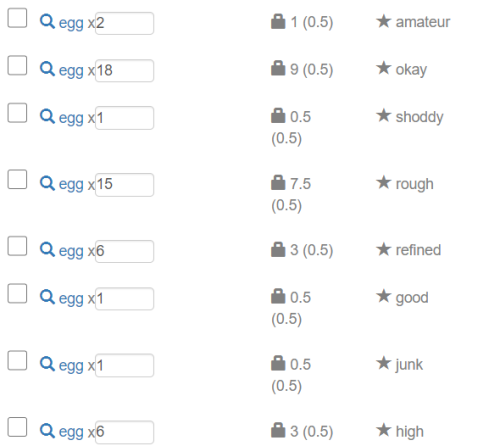 Roleplay to your heart's content with your herd/flock and for the neatest outcome, match the input with skill. If you are an expert you want high (qual. 4) quality ingredients going in as it will give high-quality milk/eggs/wool/honey out.