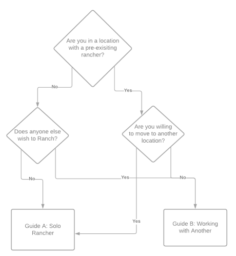 First thing’s first, however, if there is already a rancher at your target location, you might run into some problems and/or need to adjust your plans due to the highly restrictive 30 animal cap per tile. Follow my handy flow chart to see what guide will be best to follow.