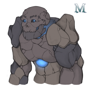 Golems are the great and mysterious beings made of minerals, held together and made sentient by forces unknown. They prefer mountainous areas which can withstand their sheer weight and force of movement. They typically stand over 9 feet tall, and their eyes are set with gems of varying types. The cracks and the spaces where their limbs meet their body glow a faint blue colour by default, but it varies according to mood.
